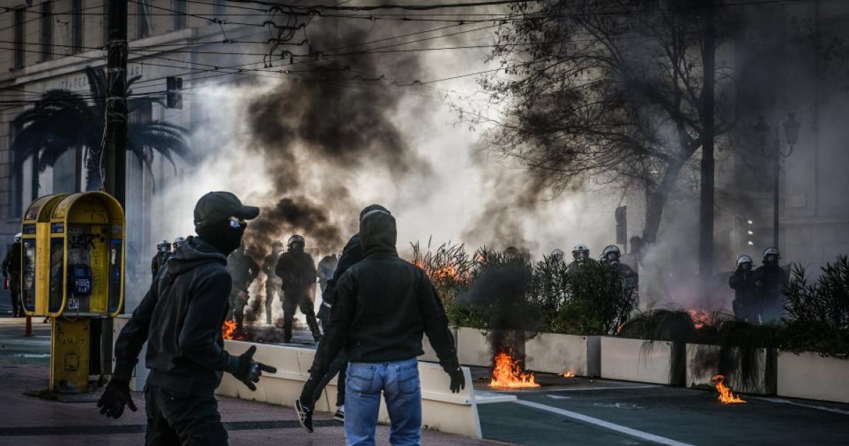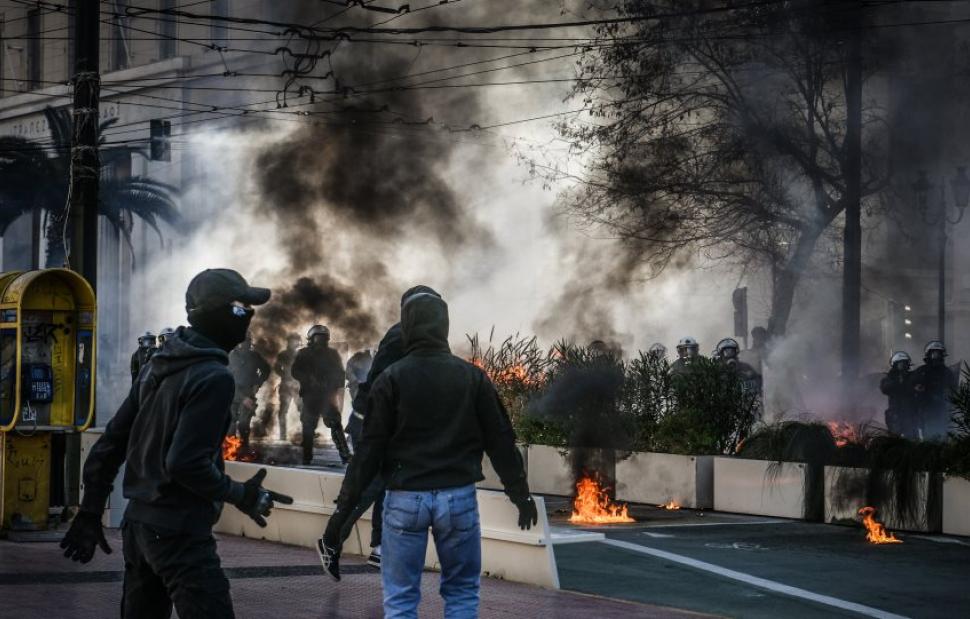 - ομάδα 200 περίπου ατόμων επιτίθεται με καδρόνια κατά των αστυνομικών δυνάμεων στο χώρο μπροστά από το Μνημείο του Άγνωστου Στρατιώτη στο Σύνταγμα,