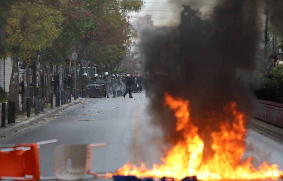 Νωρίτερα, άγνωστοι έβαλαν φωτιά σε κάδους απορριμμάτων έξω από την ΑΣΟΕΕ και πέταξαν πέτρες στις αστυνομικές δυνάμεις που βρίσκονταν έξω από το πανεπιστημιακό ίδρυμα.