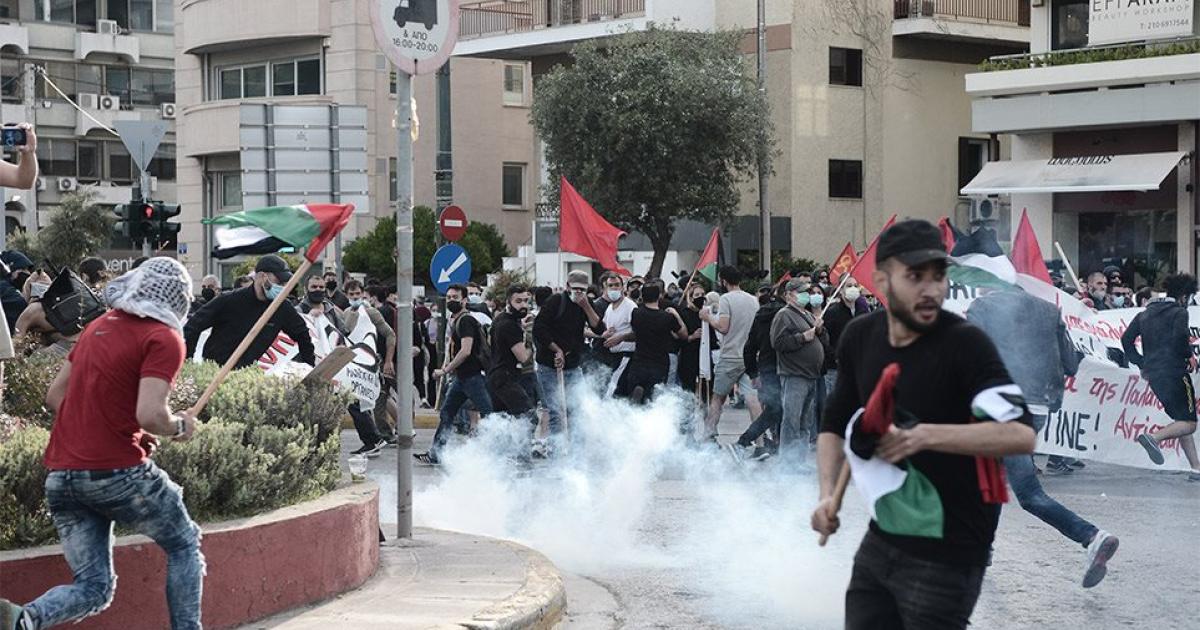 Ένταση μεταξύ διαδηλωτών και Αστυνομίας σημειώθηκε το απόγευμα της Τετάρτης 12 Μαΐου σε πορεία, που πραγματοποιούν η Πρωτοβουλία Αλληλεγγύης στον Παλαιστινιακό Λαό και συλλογικότητες έξω από την πρεσβεία του Ισραήλ στην Αθήνα.