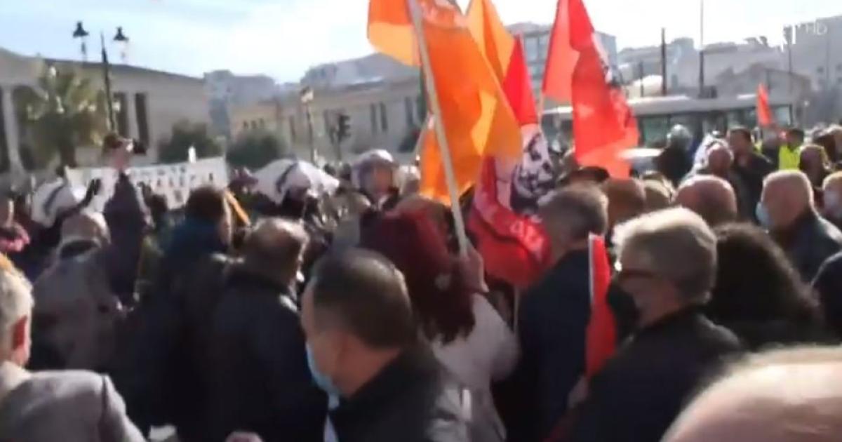 Ένταση επικράτησε πριν από λίγη ώρα έξω από το Γενικό Λογιστήριο του Κράτους στη συγκέντρωση υγειονομικών.