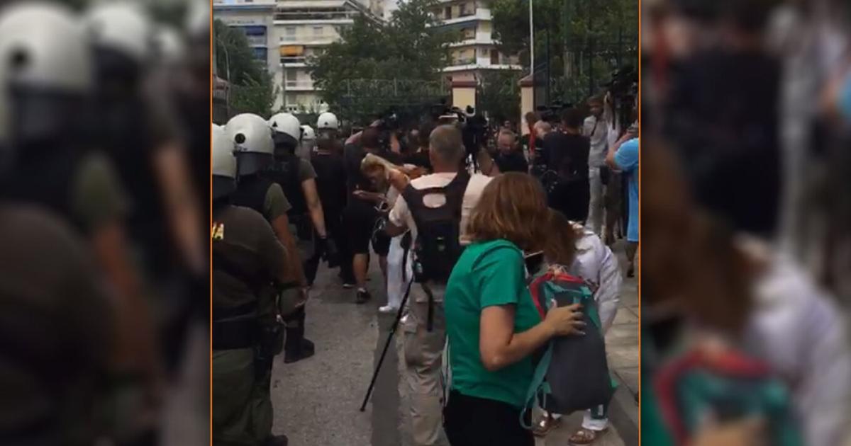 Οπαδοί πέταξαν μπουκάλια με νερό προς το μέρος των αστυνομικών δυνάμεων και των τηλεοπτικών συνεργείων κι επιτέθηκαν φραστικά κυρίως στους εκπροσώπους του Τύπου.
