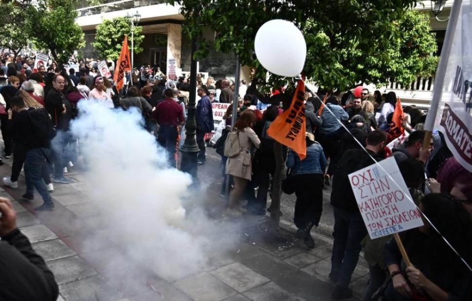 Ένταση σημειώθηκε νωρίτερα στο συλλαλητήριο των εκπαιδευτικών στο κέντρο της Αθήνας. Οι εκπαιδευτικοί επιχείρησαν να φτάσουν στο Μέγαρο Μαξίμου, ωστόσο οι αστυνομικές δυνάμεις τους απώθησαν με αποτέλεσμα να επικρατήσει ένταση.