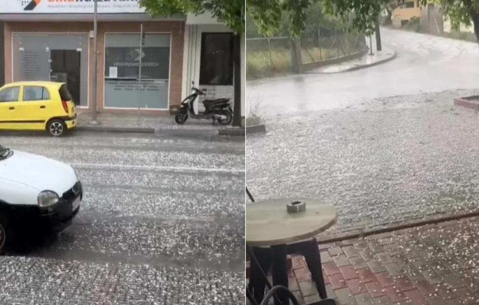Το χαλάζι που έπεσε, σε μεγάλες ποσότητες, έδινε την αίσθηση χιονόπτωσης, καθώς οι δρόμοι και τα πεζοδρόμια ντύθηκαν κυριολεκτικά στα λευκά.