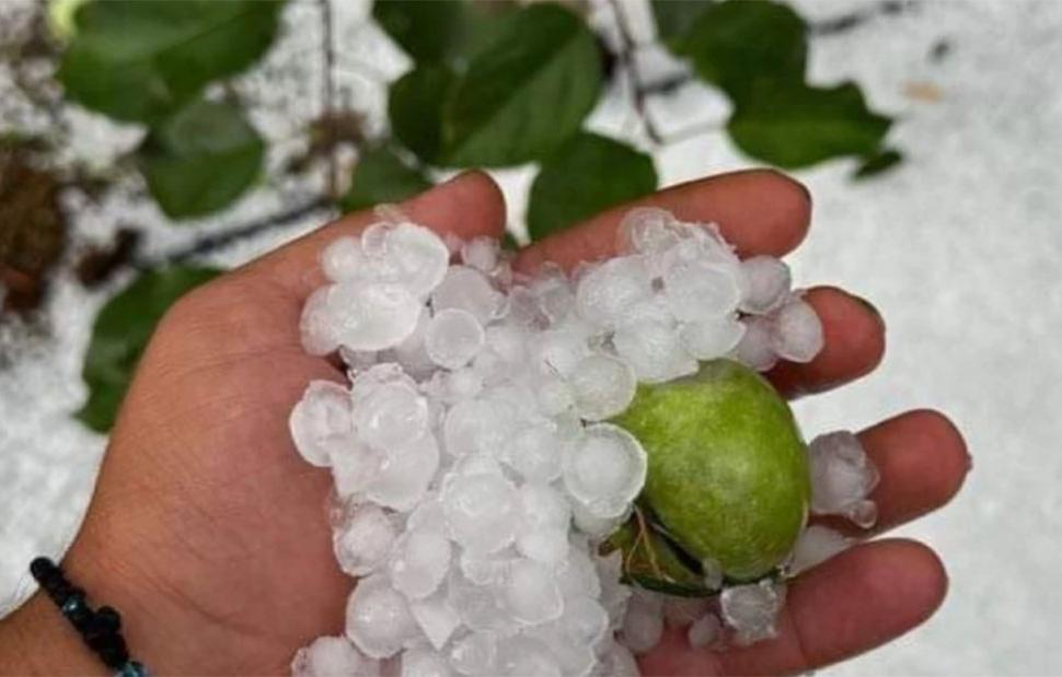 Σύμφωνα με το pellanews.gr, το χαλάζι κατέστρεψε τόσο τα κεράσια όσο και τα κτήματα σπάζοντας δέντρα.