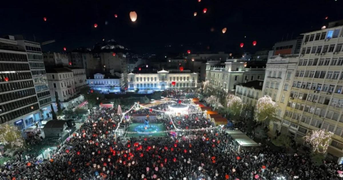 Συνολικά 3.000 βιοδιασπώμενα φαναράκια πέταξαν, έχοντας ως φόντο τη φωτισμένη Χριστουγεννιάτικη Αγορά που έχει στήσει ο Δήμος Αθηναίων.