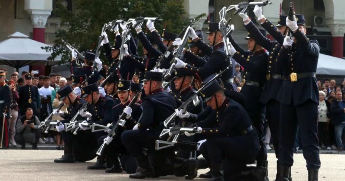 Με επιδέξιες κινήσεις κρατώντας στα χέρια τα όπλα τους, σε αρμονικό συγχρονισμό και άψογους σχηματισμούς οι σπουδαστές της στρατιωτικής σχολής Αξιωματικών Σωμάτων (ΣΣΑΣ), εντυπωσίασαν το πλήθος του κόσμου, που παρά τον άστατο καιρό, κατέκλυσε την πλατεία Αριστοτέλους στη Θεσσαλονίκη.