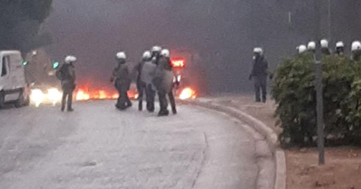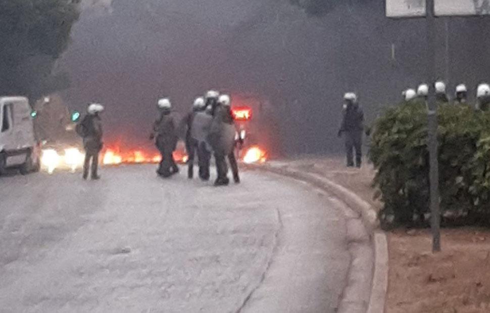 Λόγω των επεισοδίων έκλεισε ο δρόμος από την Ούλωφ Πάλμε μέχρι την οδό Ευφρονίου.
