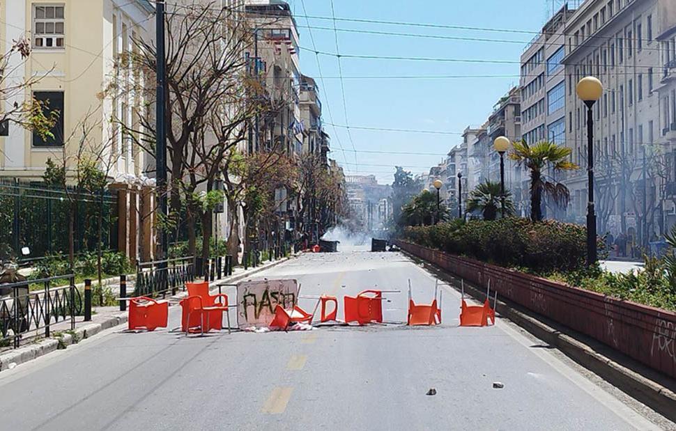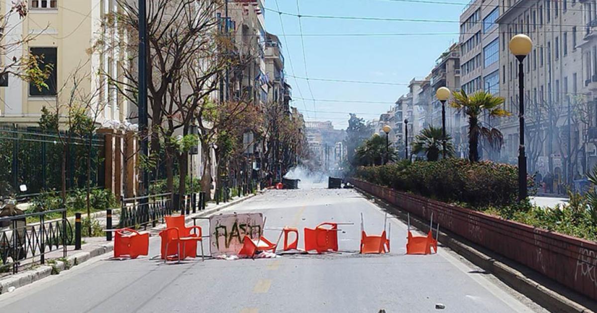 Ομάδα περίπου 20 ατόμων έβαλε φωτιές σε κάδους και έστησε οδοφράγματα στην Πατησίων. Λόγω της έντασης έχει κλείσει ο δρόμος και στα δύο ρεύματα.