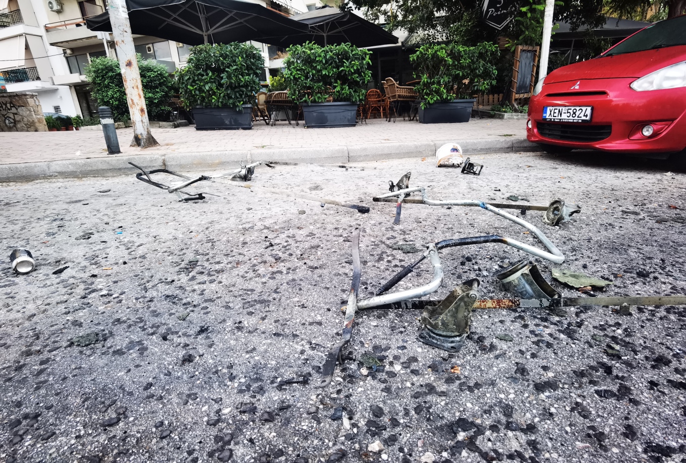 Βομβαρδισμένο τοπίο θυμίζει η περιοχή έξω από την Πανεπιστημιούπολη του Ζωγράφου μετά τα άγρια επεισόδια που σημειώθηκαν αργά τη νύχτα ανάμεσα σε ομάδα κουκουλοφόρων και δυνάμεις των ΜΑΤ.