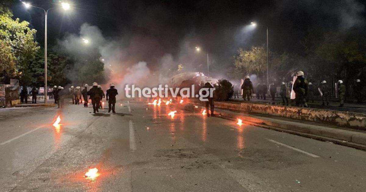 Με την επιστροφή αντιεξουσιαστών στο ΑΠΘ ξεκίνησαν επεισόδια μπροστά στην Πολυτεχνική Σχολή του ΑΠΘ, στην Εγνατία Οδό.