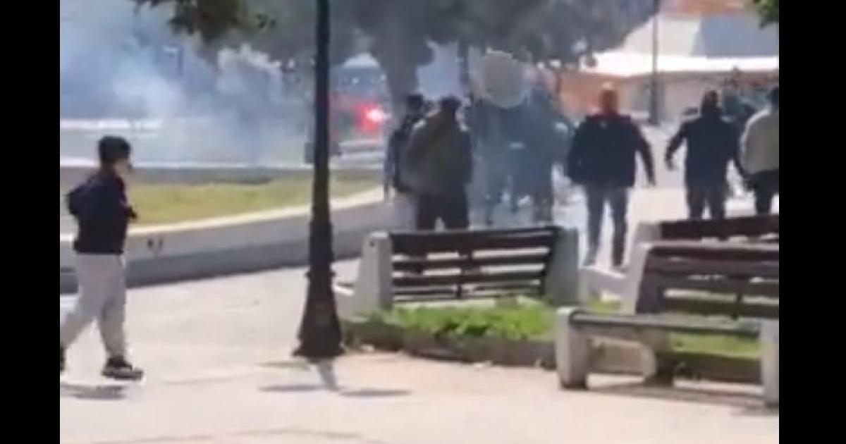Αποτροπιασμό προκαλεί το νέο βίντεο που ανήρτησαν περίοικοι στο διαδίκτυο και δείχνει πετροπόλεμο και ρίψη μολότοφ στη Νίκαια. Όπως φαίνεται στο βίντεο, πανικόβλητοι γονείς με τα παιδιά στα χέρια, σπεύδουν να απομακρυνθούν από την πλατεία όπου οπαδοί του Ιωνικού και της Προοδευτικής συνεπλάκησαν μεταξύ τους, αδιαφορώντας για τους περαστικούς.
