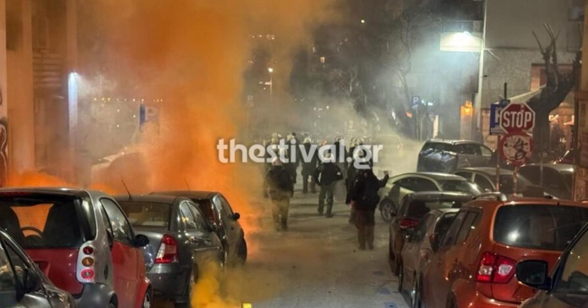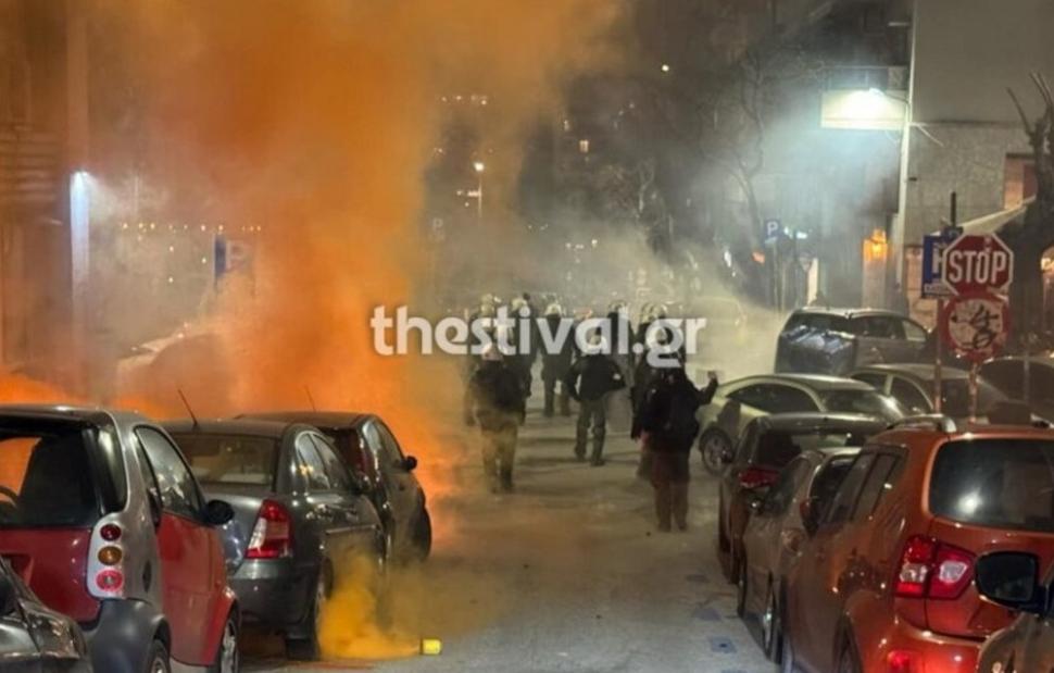 Επεισόδια εκδηλώθηκαν στο κέντρο της Θεσσαλονίκης το βράδυ της Παρασκευής μετά την πορεία για την τραγωδία στα Τέμπη.
