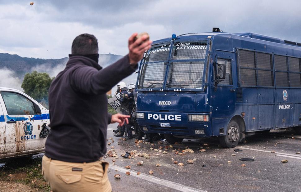 Οι αγρότες «έσπασαν» τα μπλόκα της ΕΛΑΣ, με τα ΜΑΤ να απομακρύνονται από το σημείο και κινήθηκαν προς το αεροδρόμιο Χανίων. Μάλιστα αναποδογύρισαν ένα περιπολικό που ήταν στημένο στο μπλόκο της αστυνομίας, ενώ βανδάλισαν και μία κλούβα των ΜΑΤ κατά τη διάρκεια των επεισοδίων.