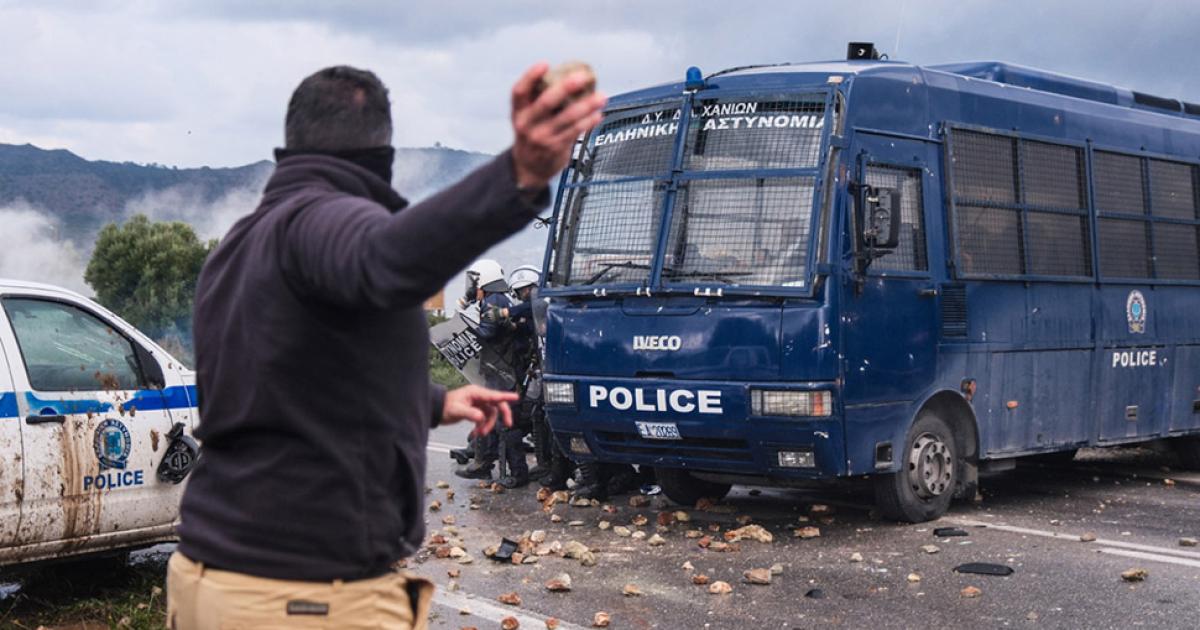 Επεισόδια με πετροπόλεμο, χημικά, κρότου λάμψης και καπνογόνα εξελίχθηκαν στην Κρήτη, καθώς οι αγρότες στον πρώτο νομό κατάφεραν να αποκλείσουν το αεροδρόμιο «Ν. Καζαντζάκης» στο Ηράκλειο αλλά και αυτό των Χανίων και να εισέλθουν σε αυτά.