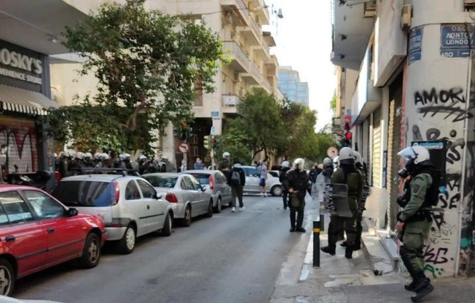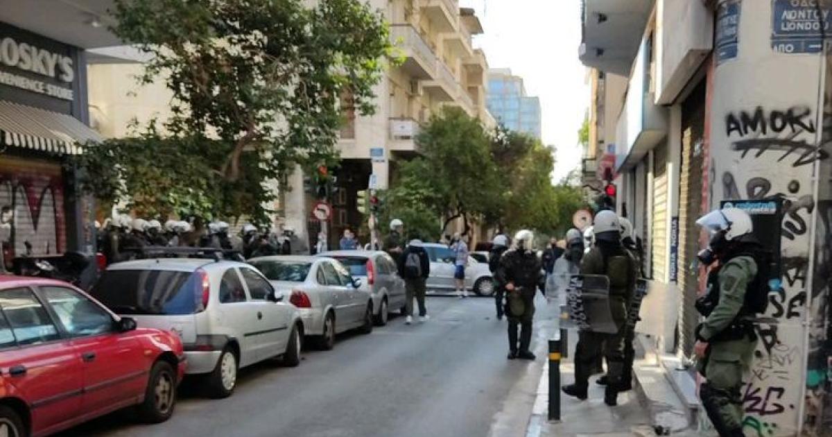 Η Αστυνομία έχει προχωρήσει σε προσαγωγές. Νωρίτερα, η οδός Σόλωνος είχε κλείσει από το ύψος της Ασκληπιού.