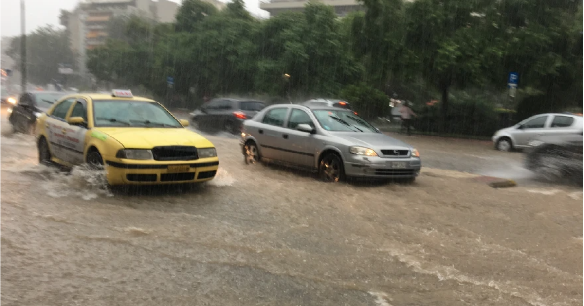 Οι ισχυρές καταιγίδες το πρωί μετέτρεψαν πολλούς δρόμους σε ορμητικά ποτάμια.