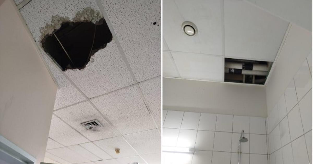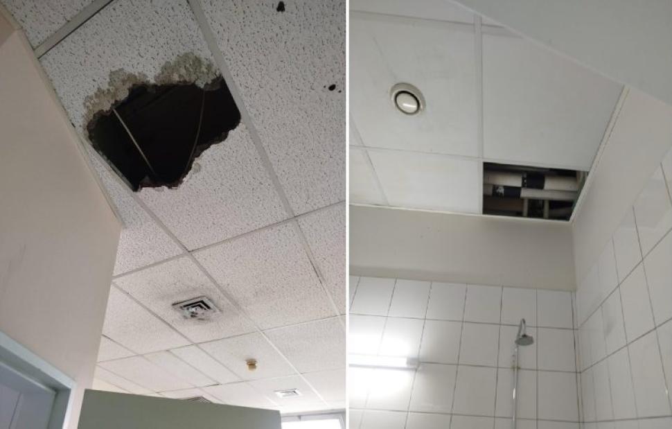 Συμπληρώνουν ότι «πτώσεις τμημάτων της οροφής είχαμε σε έξι διαφορετικούς χώρους στο Θριάσιο νοσοκομείο, το προηγούμενο διάστημα, χωρίς να έχει δοθεί ουσιαστική λύση».