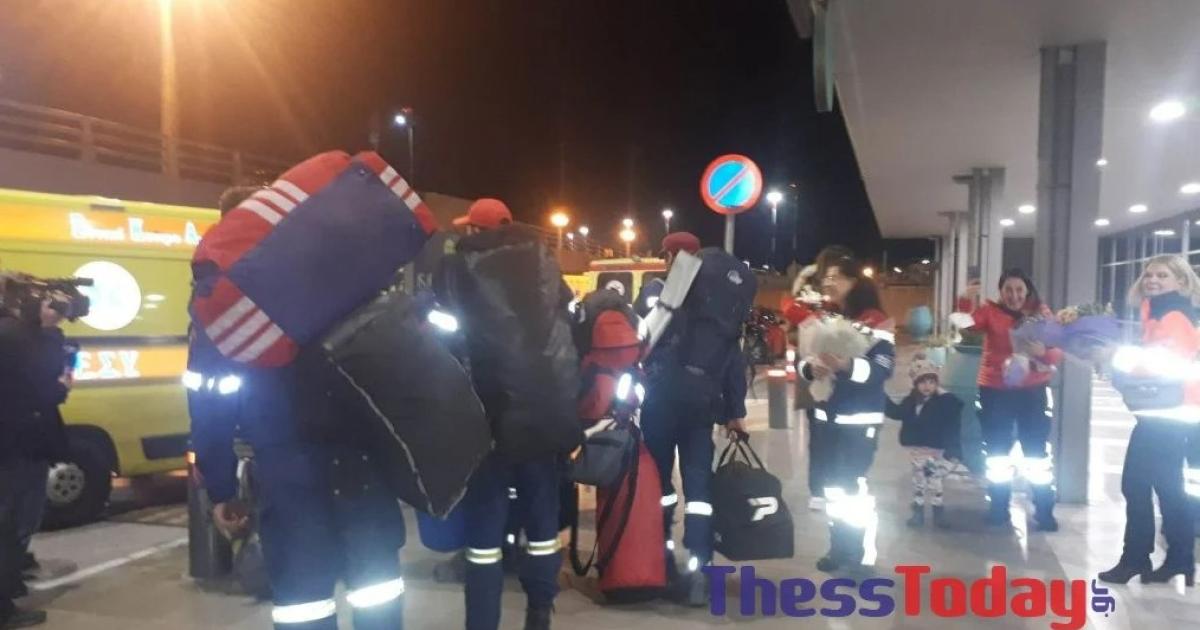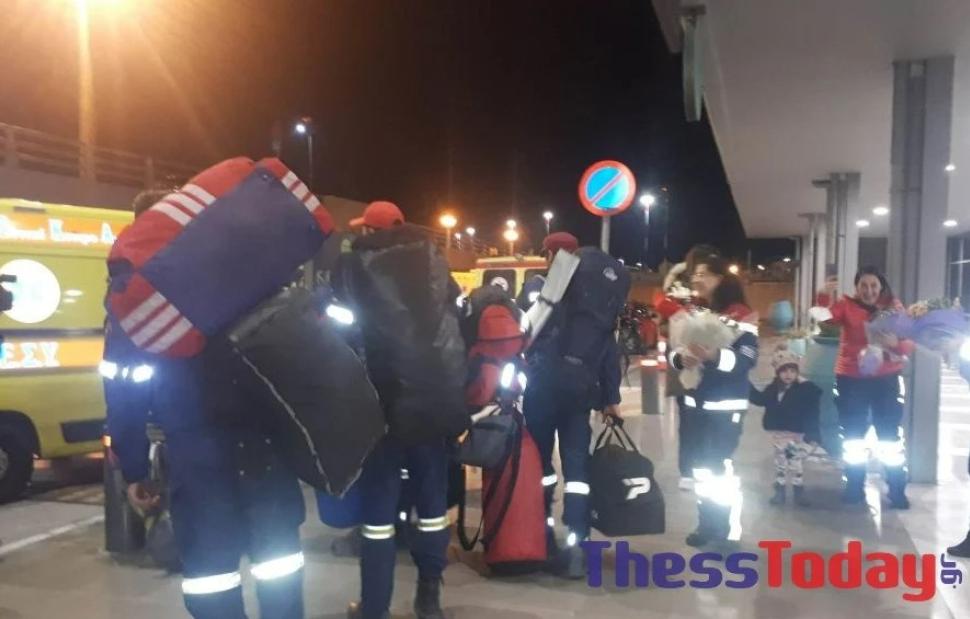 Όπως στο αεροδρόμιο «Ελευθέριος Βενιζέλος» έτσι και στο αεροδρόμιο «Μακεδονία», από νωρίς συγκεντρώθηκαν τόσο οι οικογένειες όσο και οι φίλοι των ηρωικών στελεχών που μέσα σε λίγες ημέρες κατάφεραν να σώσουν πέντε ζωές, με τις εικόνες των επιχειρήσεών τους να ταξιδεύουν σε κάθε γωνιά του πλανήτη.