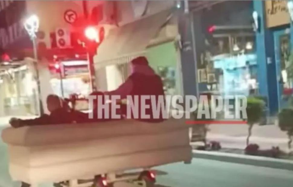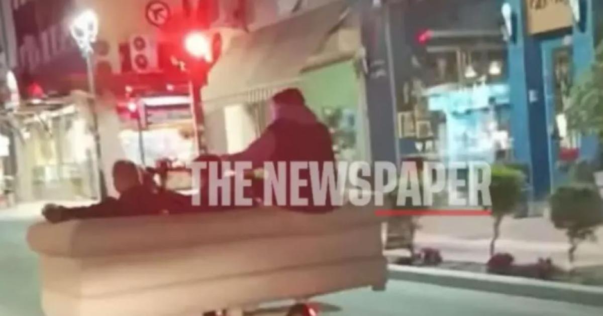 Πώς μετέφεραν τον καναπέ με τα ηλεκτρικά πατίνια στον Βόλο