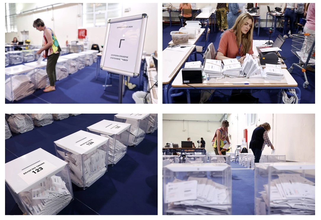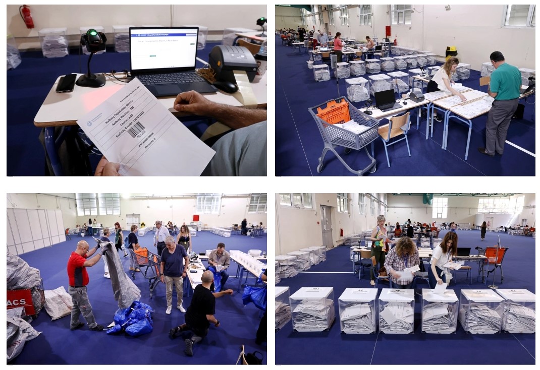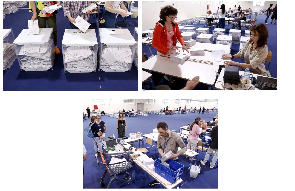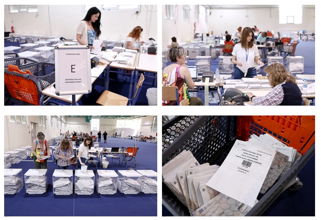 Τρεις ημέρες απομένουν για τις Ευρωεκλογές της 9ης Ιουνίου. Στο εκθεσιακό κέντρο Περιστερίου βρίσκεται σε εξέλιξη η διαλογή και των επιστολικών ψήφων και η τοποθέτησή τους στο χώρο φύλαξης.