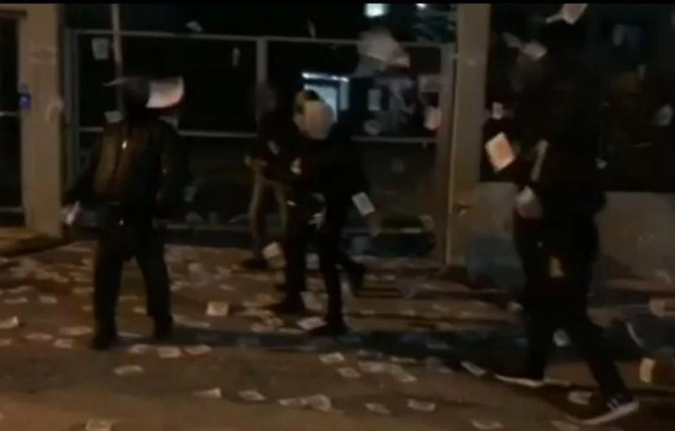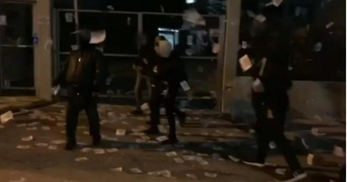 Τα μέλη του «Ρουβίκωνα» έφτασαν τις εγκαταστάσεις του υπουργείου Ψηφιακής Διακυβέρνησης στην οδό Φραγκούδη στην Καλλιθέα, πέταξαν τρικάκια και έγραψαν συνθήματα με σπρέι στην τζαμαρία του κτιρίου.
