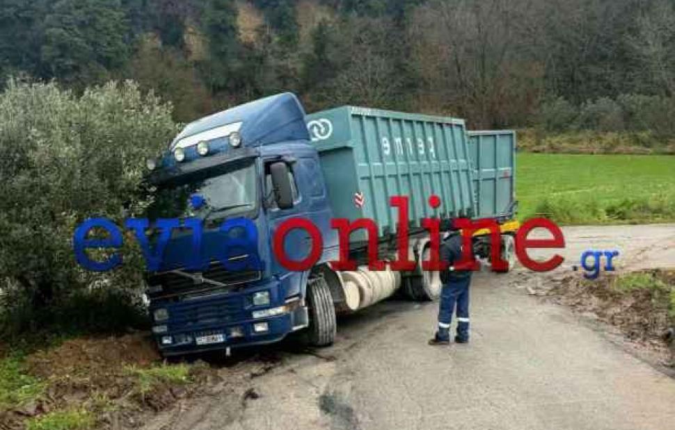 Το μεσημέρι Τρίτης φορτηγό με ρυμουλκό βγήκε εκτός δρόμου σε περιοχή Ιστιαίας-Αβγαριά του Δήμου Ιστιαίας Αιδηψού κοντά στον ΧΥΤΑ. Ευτυχώς δεν υπήρξε τραυματισμός του οδηγού, σύμφωνα με αποκλειστικές πληροφορίες του evia online.