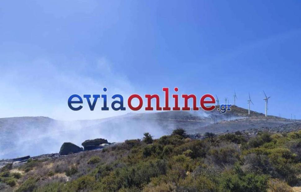 Καλύτερη είναι η εικόνα της πυρκαγιάς, που εκδηλώθηκε το μεσημέρι στην Κάρυστο.