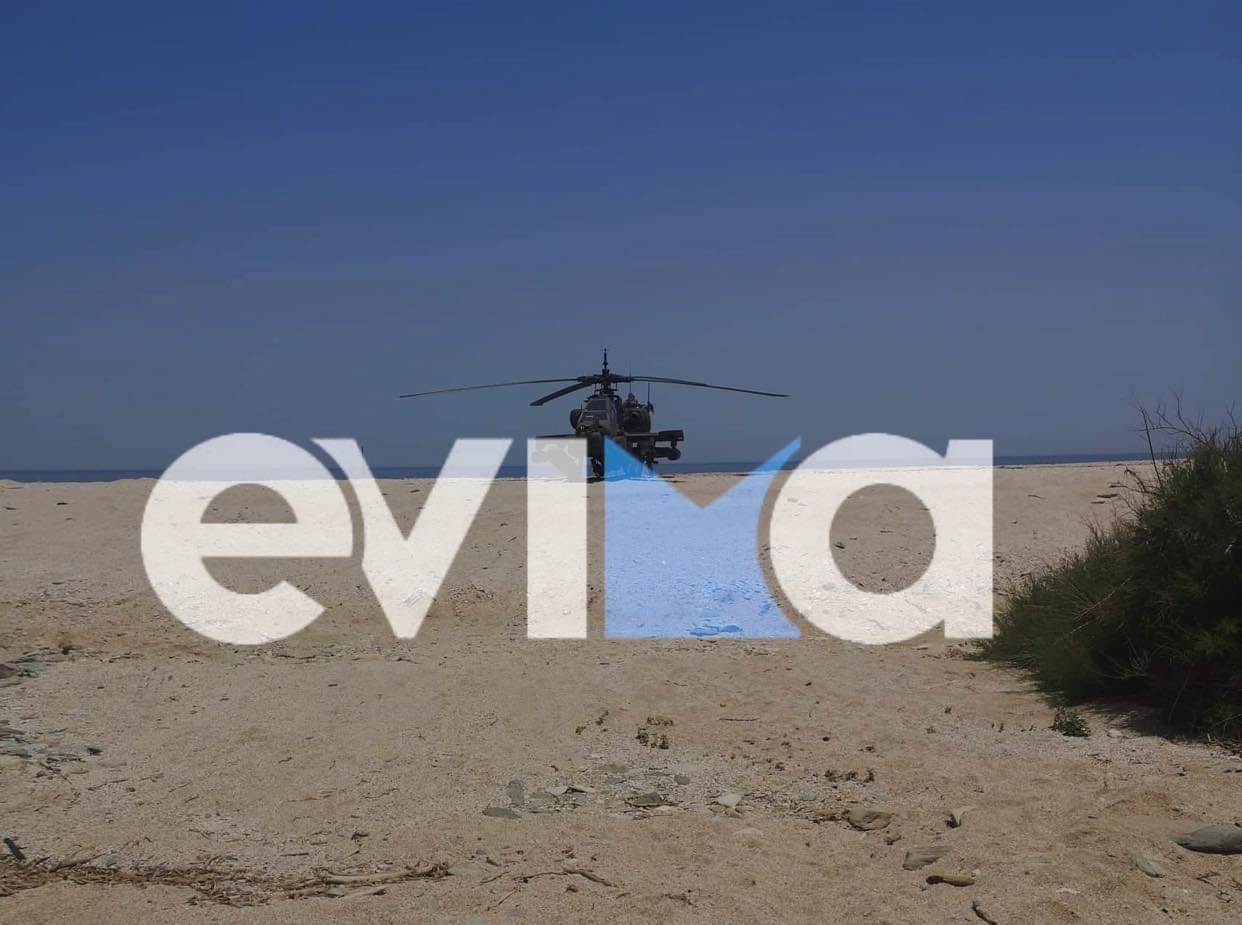 Στην παραλία Γιαννίτσι στη Νότια Εύβοια καθηλώθηκε, ένα επιθετικό στρατιωτικό ελικόπτερο Apache της Αεροπορίας Στρατού.