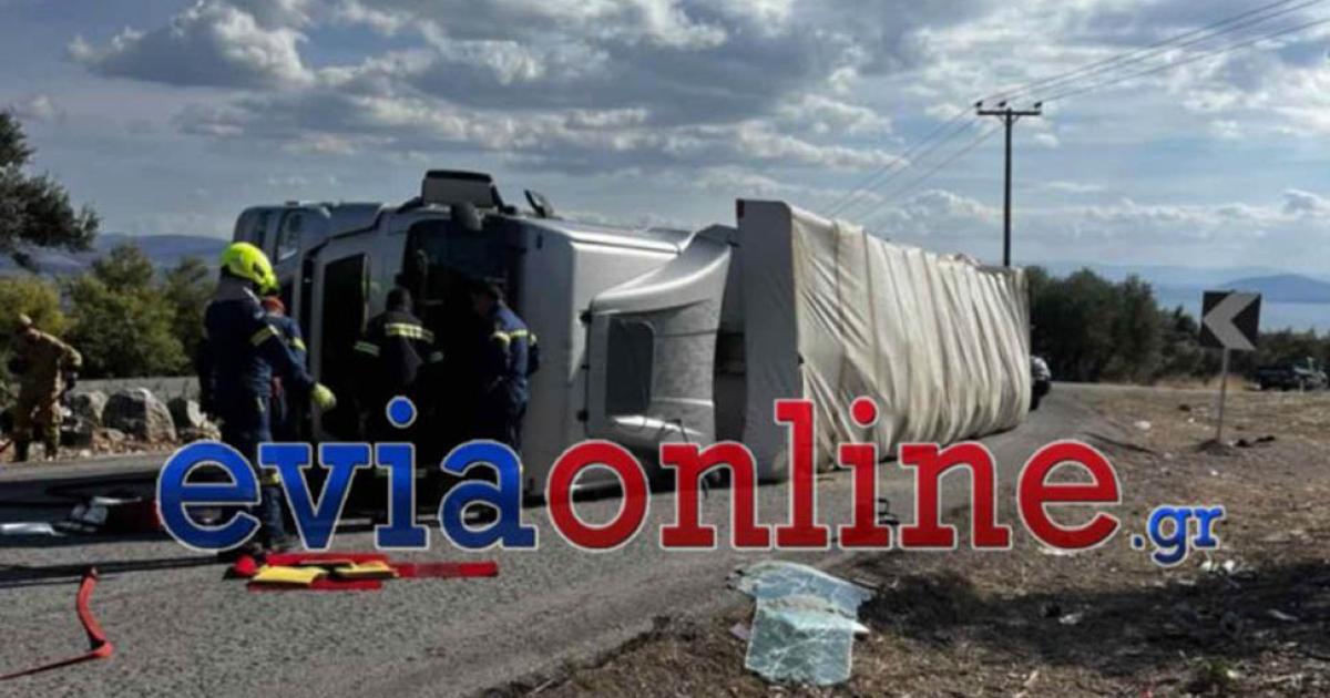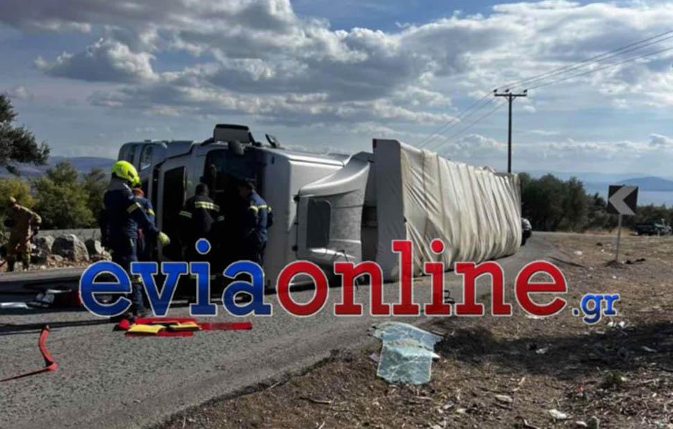 Τροχαίο ατύχημα σημειώθηκε το μεσημέρι της Δευτέρας, με εκτροπή νταλίκας στη θέση Πανόραμα έξω από τα Ψαχνά και έχει αναποδογυρίσει.