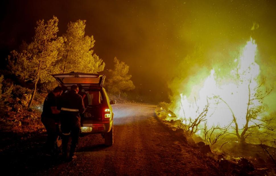 Πραγματική ολονύχτια μάχη έδωσαν οι Πυροσβέστες και οι εθελοντές στο μέτωπο της φωτιάς προκειμένου να καταφέρουν να περιορίσουν το μέτωπο, καθώς ενεργούσαν μόνο οι επίγειες δυνάμεις.