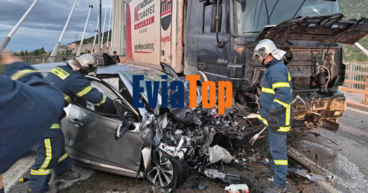 Συγκεκριμένα, σύμφωνα με τοπικά μέσα το ΙΧ αυτοκίνητο κάτω από αδιευκρίνιστες συνθήκες συγκρούστηκε σφόδρα με ένα φορτηγό στην υψηλή γέφυρα.