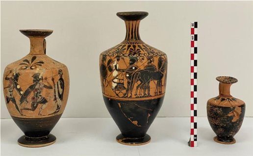 Πρόκειται για μελανόμορφα αγγεία εισηγμένα από την Αττική, αγγεία τοπικών εργαστηρίων, πήλινα και χάλκινα ειδώλια, κοσμήματα, σφραγιδόλιθοι, μία χάλκινη ασπίδα και ένα σιδερένιο κράνος, όπως αναφέρει ο ιστότοπος evima.gr.