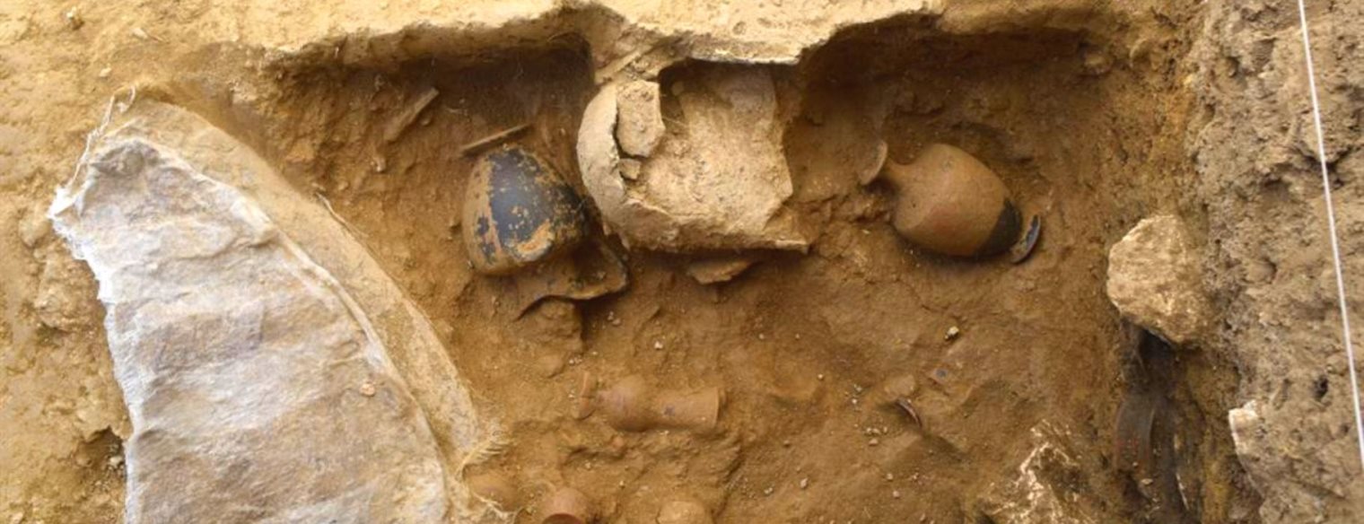 Πρόκειται για μελανόμορφα αγγεία εισηγμένα από την Αττική, αγγεία τοπικών εργαστηρίων, πήλινα και χάλκινα ειδώλια, κοσμήματα, σφραγιδόλιθοι, μία χάλκινη ασπίδα και ένα σιδερένιο κράνος
