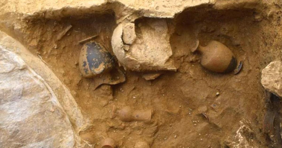 Κάτω από τον υστεροαρχαϊκό ναό, από τον οποίο μόνο τα θεμέλια σώζονται (10?30 μ), εντοπίζονται κατάλοιπα, τουλάχιστον δύο παλαιότερων αρχιτεκτονικών φάσεων, ανάμεσα σε αυτά και μία ημικυκλική εστία ή εσχάρα», αναφέρει ανακοίνωση του υπουργείου Πολιτισμού και Αθλητισμού.