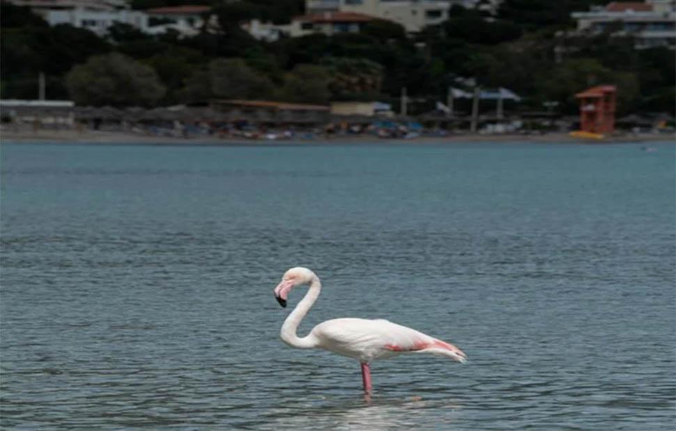 Έκπληκτοι λουόμενοι στην παραλία Βουλιαγμένης και Αρτέμιδας είδαν φλαμίνγκο να κολυμπούν στο νερό.