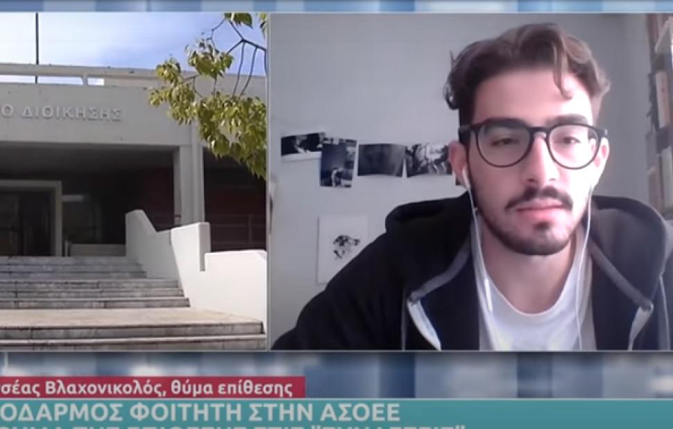 Για την επίθεση που δέχθηκε στο Οικονομικό Πανεπιστήμιο Αθηνών (πρώην ΑΣΟΕΕ), μίλησε ο φοιτητής Οδυσσέας Βλαχονικολός.