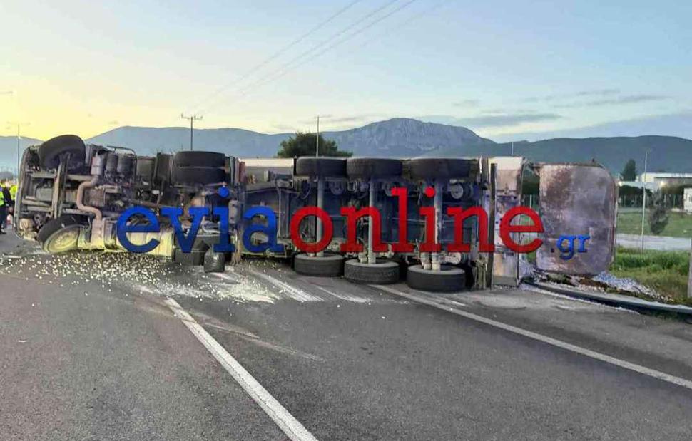 Φορτηγό που μετέφερε χαλίκι, ανετράπη υπό αδιευκρίνιστες –μέχρι στιγμής– συνθήκες νωρίς το πρωί της Παρασκευής (06/02) στην Εθνική Οδό Αθηνών – Λαμίας, στο ύψος του Αυλώνα.