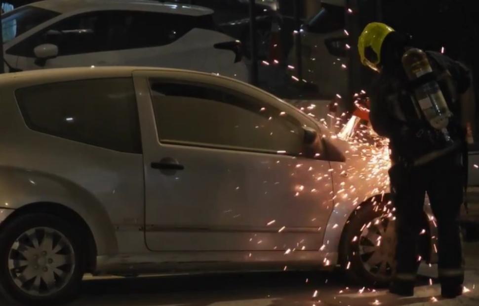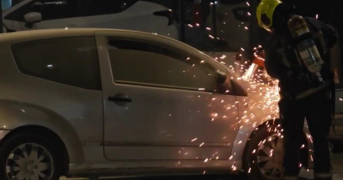 Οι πυροσβέστες άνοιξαν το καπό με τροχό και αφαίρεσαν τη μπαταρία για να αποτραπεί τυχόν έκρηξη.