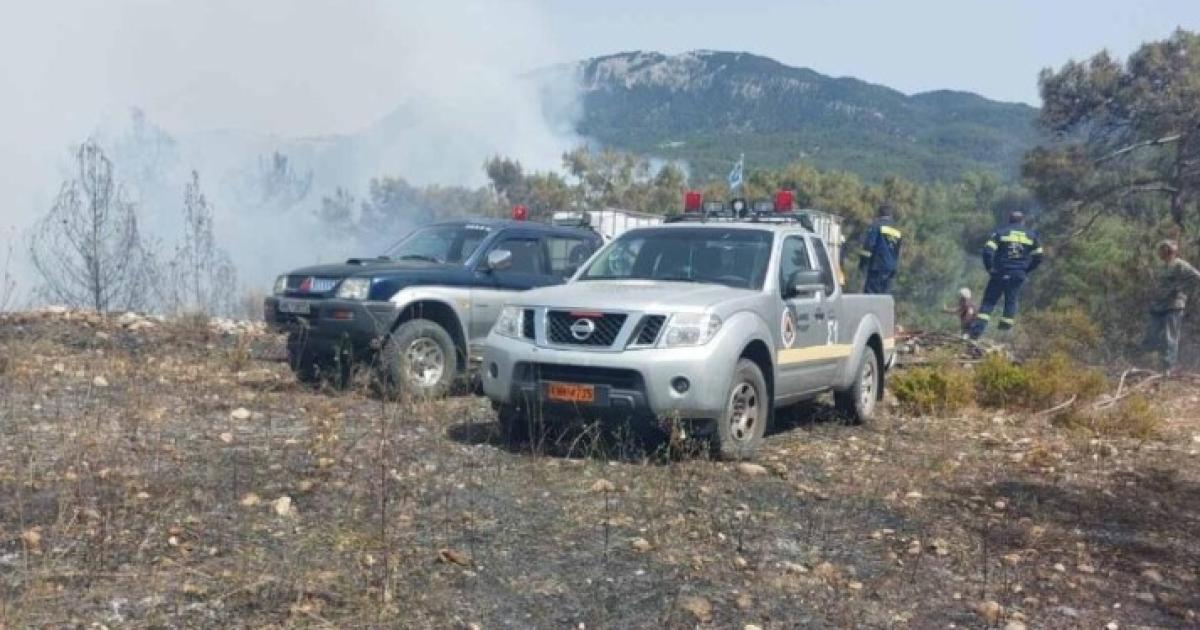 #Πυρκαγιά σε δασική έκταση στην περιοχή Καλαμώνια Ατταβύρου Ρόδου. Κινητοποιήθηκαν 22 #πυροσβέστες με 9 οχήματα. Συνδρομή από εθελοντές και υδροφόρες ΟΤΑ.