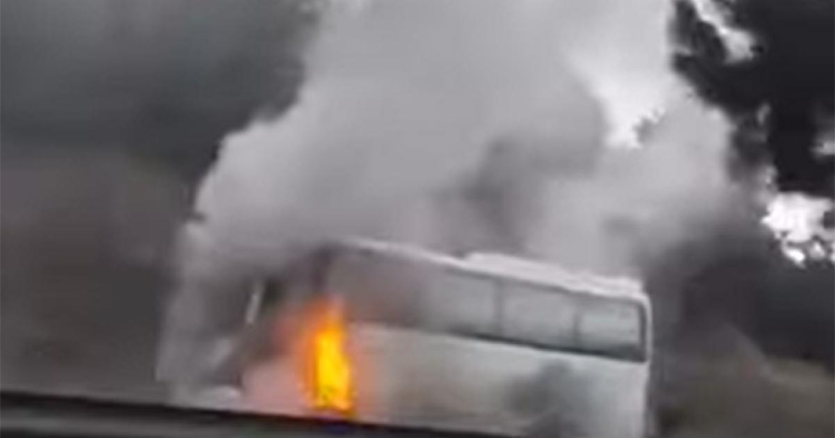 Η φωτιά ξέσπασε κάτω από άγνωστα αίτια στο σχολικό λεωφορείο μέσα στο οποίο επέβαιναν παιδιά. Το όχημα βρισκόταν στην περιφερειακή οδό με κατεύθυνση προς δυτικά, μετά τον κόμβο Κατσιμίδη.