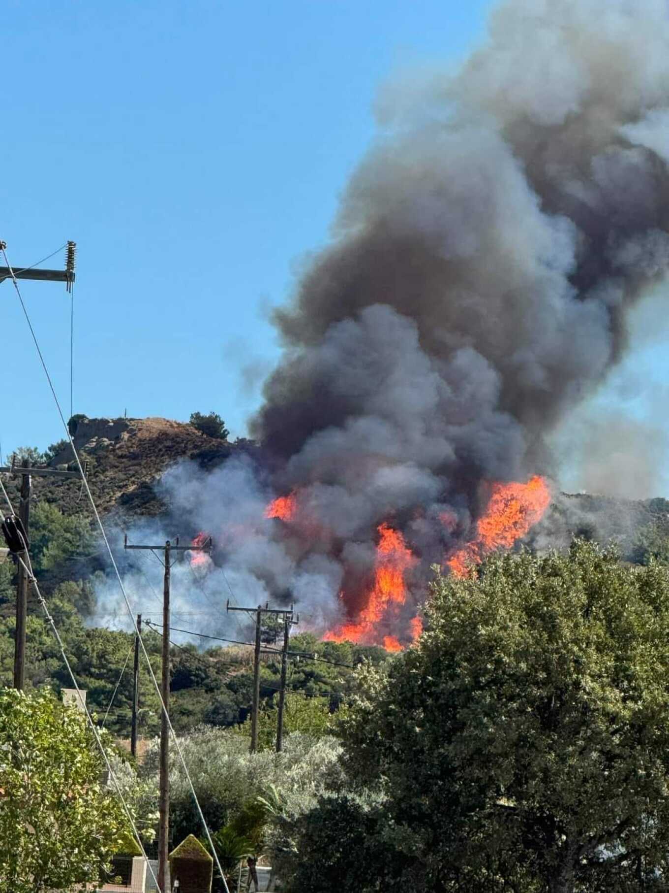 Στο σημείο βρίσκονται ισχυρές δυνάμεις της Πυροσβεστικής, εναέρια μέσα και εθελοντές που συνδράμουν για τον έλεγχο της απειλητικής φωτιάς.