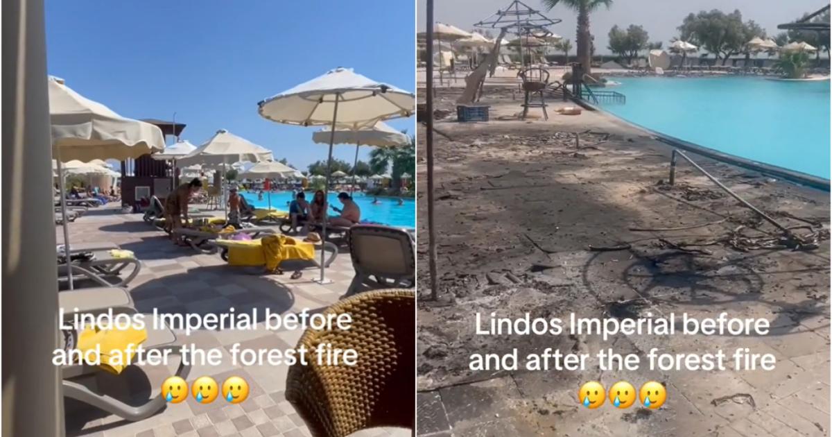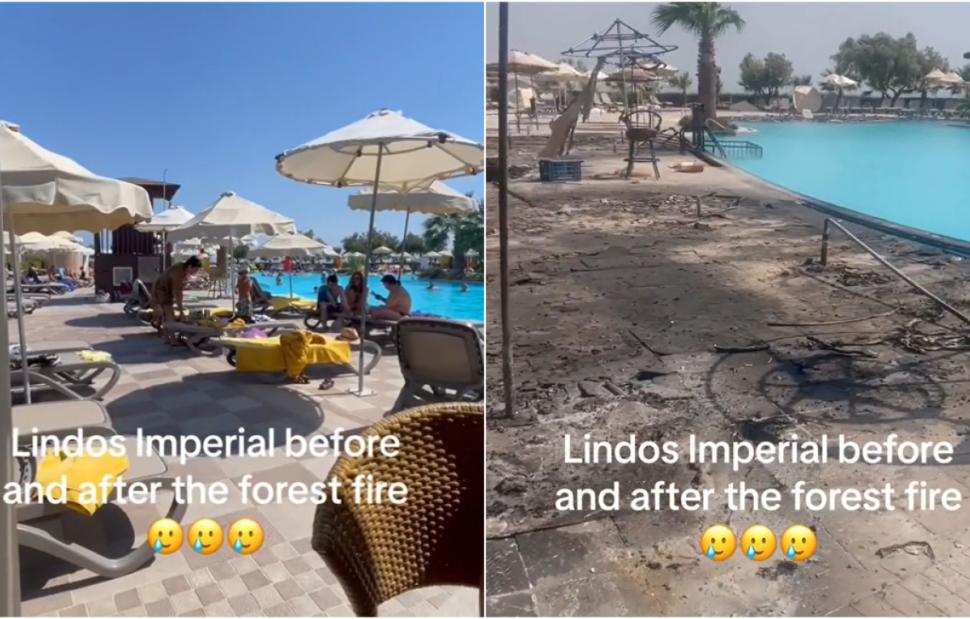 Πολλοί είναι εκείνοι που ανεβάζουν βίντεο στα κοινωνικά δίκτυα από τις συγκλονιστικές στιγμές που έζησαν στο νησί τις τελευταίες ημέρας. Ένας από τους τουρίστες που βρισκόταν σε ξενοδοχείο της Λίνδου ανέβασε το «πριν» και το «μετά» της τεράστιας φωτιάς που έκαψε και το ξενοδοχείο που έμενε.