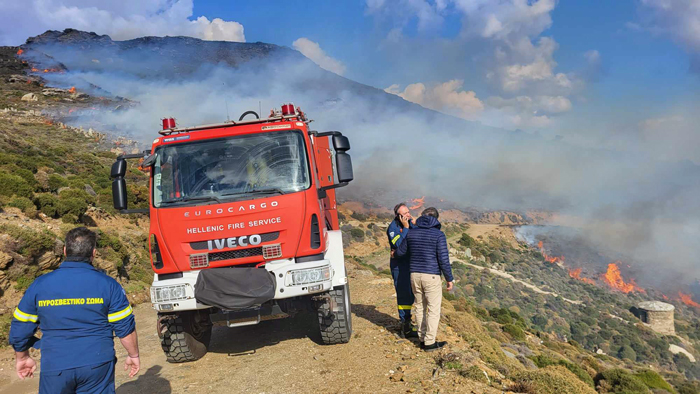 Συγκεκριμένα, αναμένονται έξι πυροσβέστες με δύο οχήματα από την Σύρο και τρεις πυροσβέστες με ένα όχημα από την Τήνο.