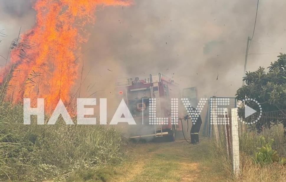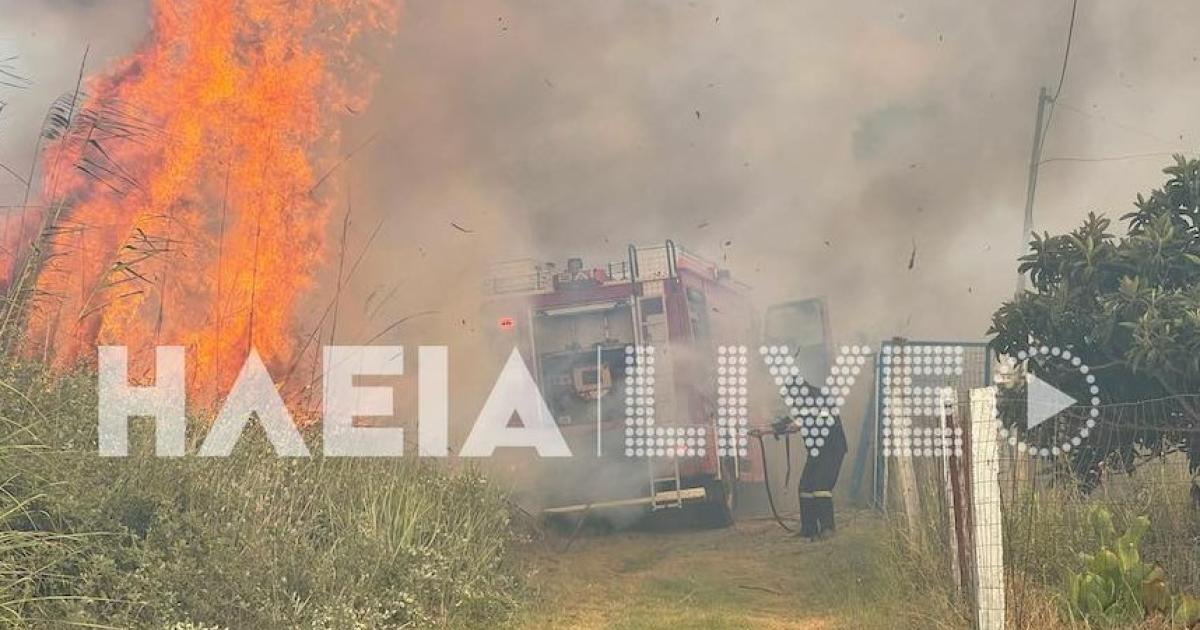 Όχημα της Πυροσβεστικής παραλίγο να καεί την ώρα που επιχειρούσε στην κατάσβεση της πυρκαγιάς που μαίνεται στην Σπιάτζα, στην περιοχή της Σαρακίνας, στην Ηλεία.