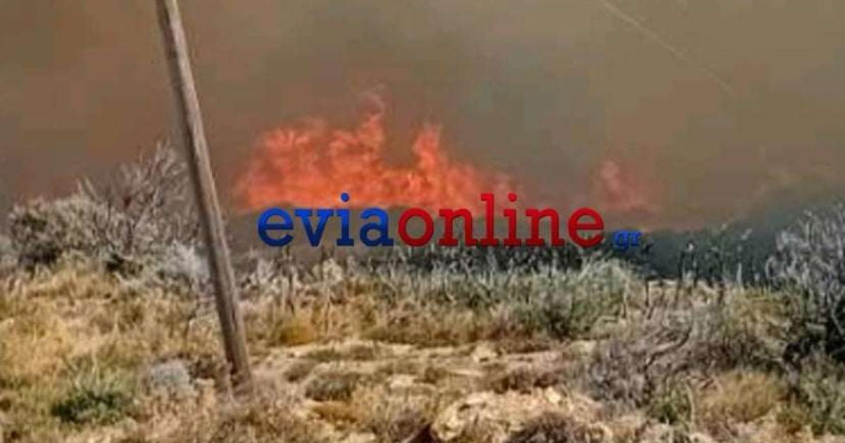 Η φωτιά καίει ανεξέλεγκτα καθώς λόγω των ισχυρών ανέμων εξαπλώνεται ταχύτατα. Δυστυχώς σύμφωνα με μαρτυρίες κατοίκων του χωριού στο eviaonline η φωτιά έχει φτάσει σε απόσταση αναπνοής από τα σπίτια.