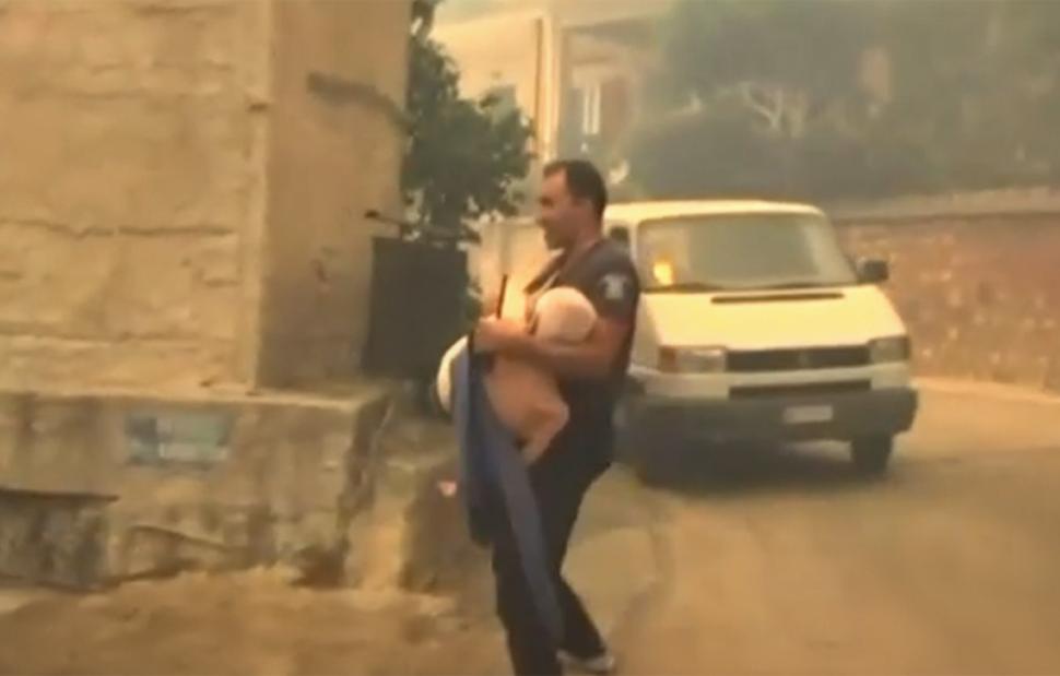 Συγκλονιστικές εικόνες εκτυλίχθηκαν κατά τη διάρκεια της πυρκαγιάς στην Πάτρα. Με προσωπική παρέμβαση ένας αστυνομικός στην Πάτρα πήρε στα χέρια του έναν ηλικιωμένο για να τον απομακρύνει από το μέτωπο της φωτιάς που εκδηλώθηκε το μεσημέρι έξω από την Πάτρα.