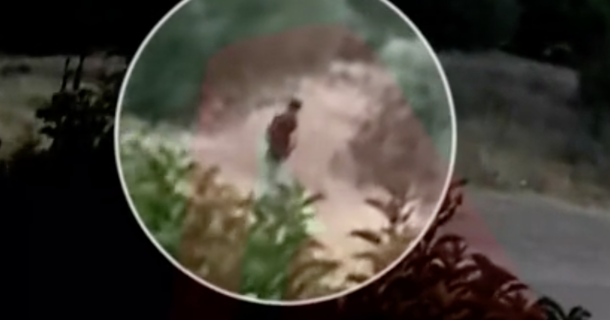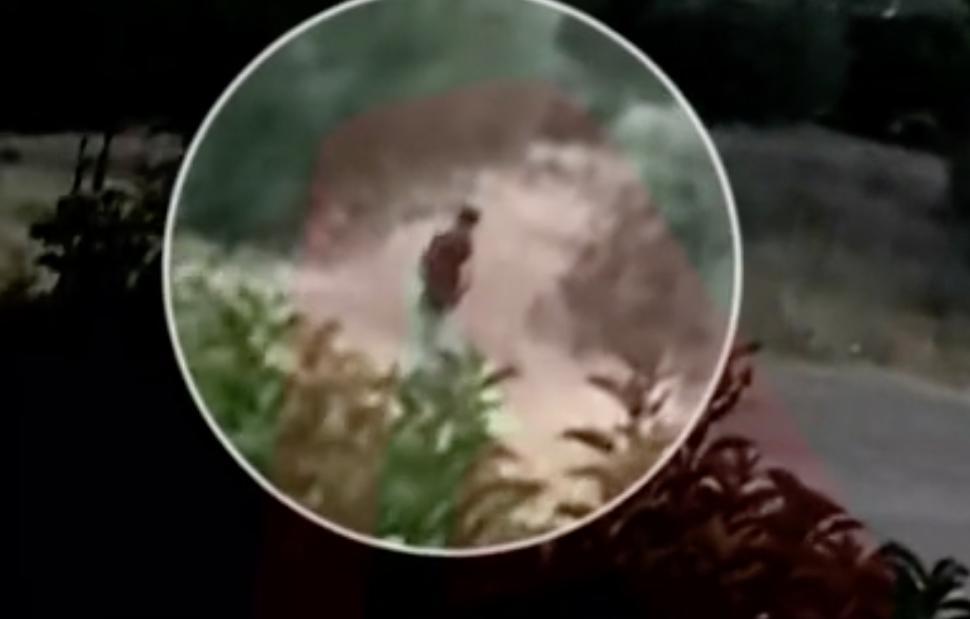 Ενας μαυροντυμένος άνδρας με γρήγορες κινήσεις περνά το δρόμο, σκύβει και διακρίνεται να κρύβεται πίσω από ένα δέντρο και στη συνέχεια να φεύγει βιαστικά.