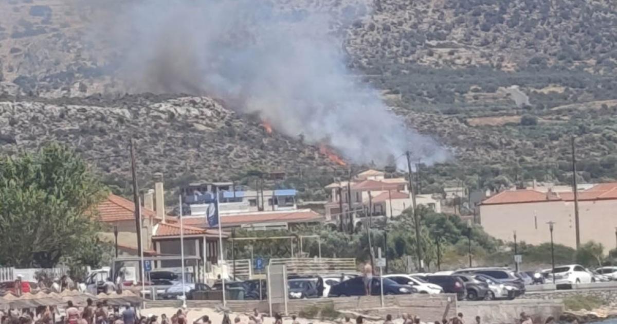 Σύμφωνα με την πυροσβεστική η φωτιά καίει γεωργική έκταση.