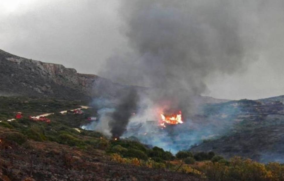 Στην επιχείρηση κατάσβεσης συμμετέχουν τρία πυροσβεστικά οχήματα.
