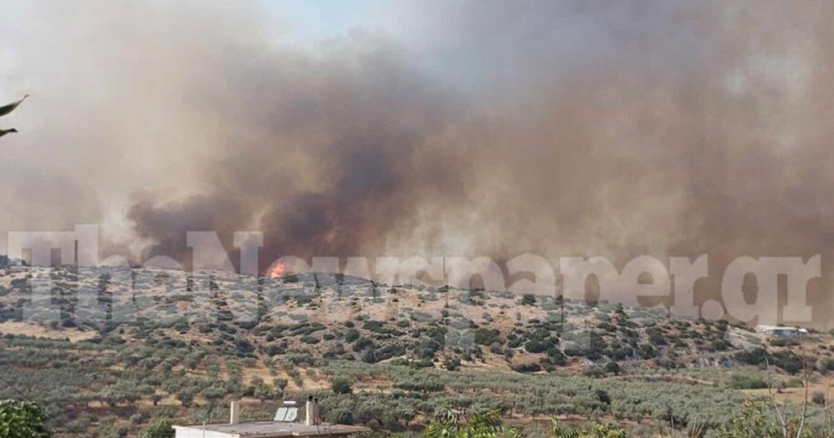 Σύμφωνα με τον Αντιδήμαρχο Πολιτικής Προστασίας του Δήμου Ρήγα Φεραίου, Δημήτρη Παλληκάρη, η φωτιά είναι μεγάλη και οι άνεμοι που πνέουν είναι πολύ ισχυροί και σπρώχνουν την φωτιά προς κατοικημένη περιοχή.